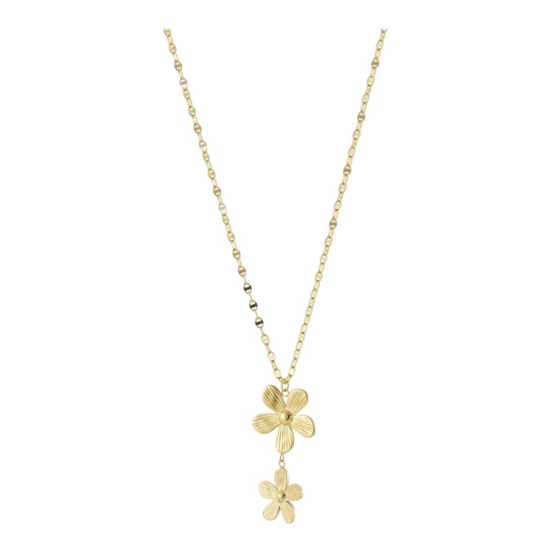 Loisir Κολιέ Flower ατσάλινο επίχρυσο με λουλούδια