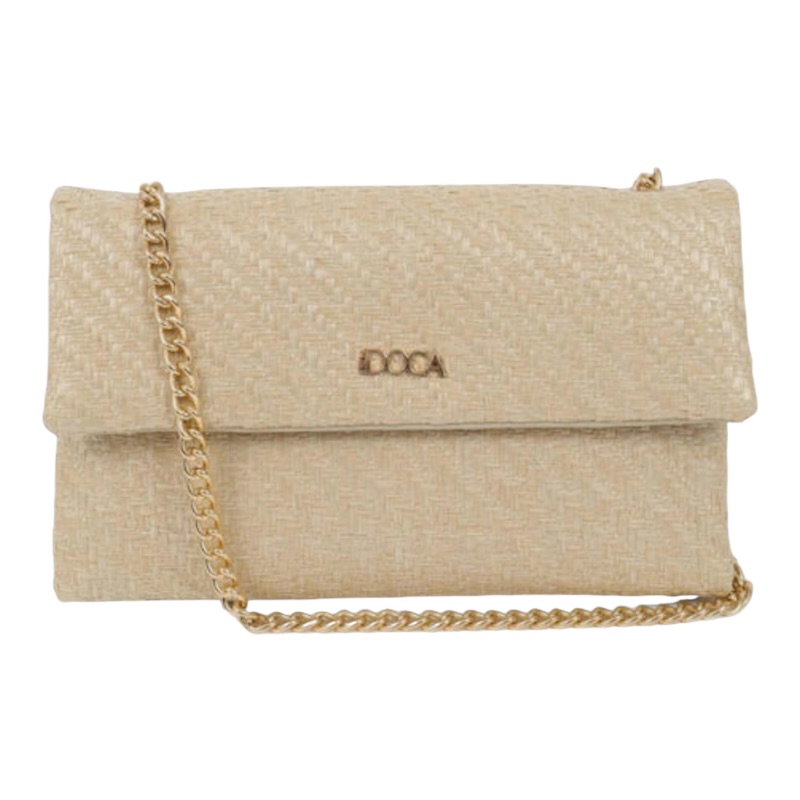 DOCA Ψάθινη γυναικεία μικρή τσάντα ώμου μπεζ