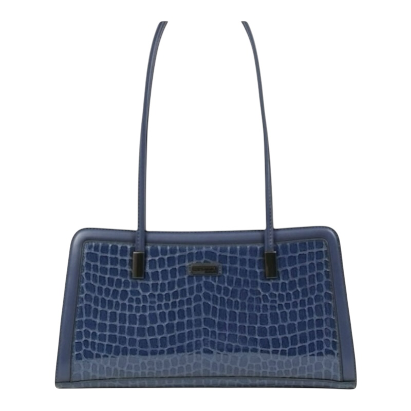 Γυναικεία μικρή τσάντα ώμου σε μπλε χρώμα με κροκό λουστρίν υφή και εξωτερική τσέπη.